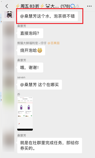 在社群中,福利官会主动@一些活跃度较高的用户,邀请他们分享使用感受。