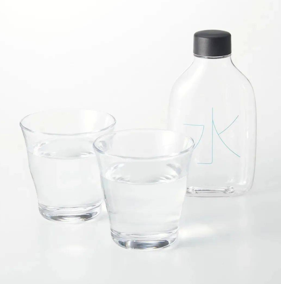MUJI无印良品推出的水瓶,去掉了标签,采用PET环保材质透明瓶身,一个细线的水字印在瓶身,感觉非常简约。