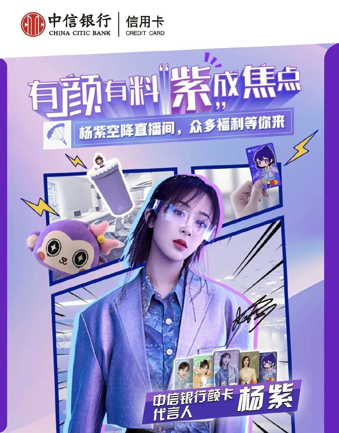 前不久,中信银行颜卡就官宣杨紫成为颜卡代言人,通过一系列的营销玩法,为品牌年轻化提供一个好的示范。