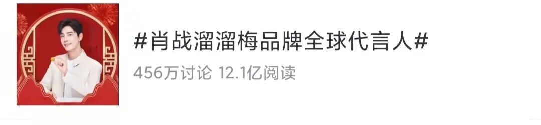 更严格一点的直接把日常饮食换成代餐,比如薄荷健康的21天代餐组合,WonderLab小胖瓶代餐奶昔,Keep每日蛋白棒.......我们可以发现,在大家对健康越来越看重的当下,0糖0脂或者低卡低脂这个赛道一直异常火热。溜溜梅显然看中了这个风口,从梅类产品中把梅冻细分出来,佐以“零脂肪”这个卖点,既符合消费者的健康需求,又容易做成营销话题。毕竟“零脂肪”和天然、健康这些好词非常容易挂钩,一但做成话题,曝光度自然也就上去了。2011年,彼时年销量不过5000万,就舍得下1000万的血本进行品牌推广。2013年签下了凭借《仙剑三》、《宫锁心玉》而大热的明星杨幂作为首席品牌官,从而让这个青梅品牌迅速被大众熟知。今年是溜溜梅与杨幂合作的第九年,并且在去年12月续约的同时,还将她升级为全球代言人。前已有杨幂作为多年的品牌代言人,为什么溜溜梅还增加了新的代言人呢?大家也知道,一个明星就是一个超级大IP,特别是大热明星,在媒体上出现的频率是极高的,选择他们为代言人,也相当于增加了产品的曝光度。肖战在《陈情令》大火之后,人气大涨,集结了一批粘性很高的粉丝,购买力极强。无论是他代言的怡达山楂还是隅田川咖啡,迅速在同品类产品的销量中拉开差距,甚至天猫的怡达食品旗舰店一度被买空。这样来看,溜溜梅应该也是看重肖战背后强大的粉丝购买力。