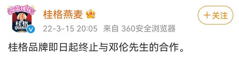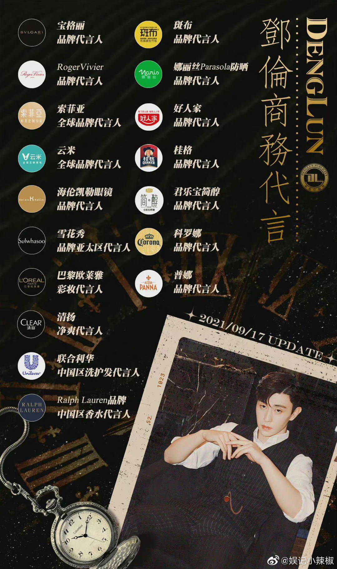 已播完的电视剧:《一千零一夜》《楚桥传》《我的真朋友》《香蜜沉沉烬如霜》等邓伦、倪妮的《夜旅人》还在路上,《密室大逃脱第四季》计划录制…桂格燕麦、菜鸟裹裹、Gucci、清扬、雪花秀、久久丫......大家都开始排队预约解约了,开启权限邓伦相关微博模式。可以想象,不少品牌方已经哭晕在厕所,有几个品牌就特别倒霉。前脚刚刚官宣邓伦全球品牌代言人的身份,后脚就解约了。恭喜邓伦创下史上最短代言人记录,拿到了代言体验卡。