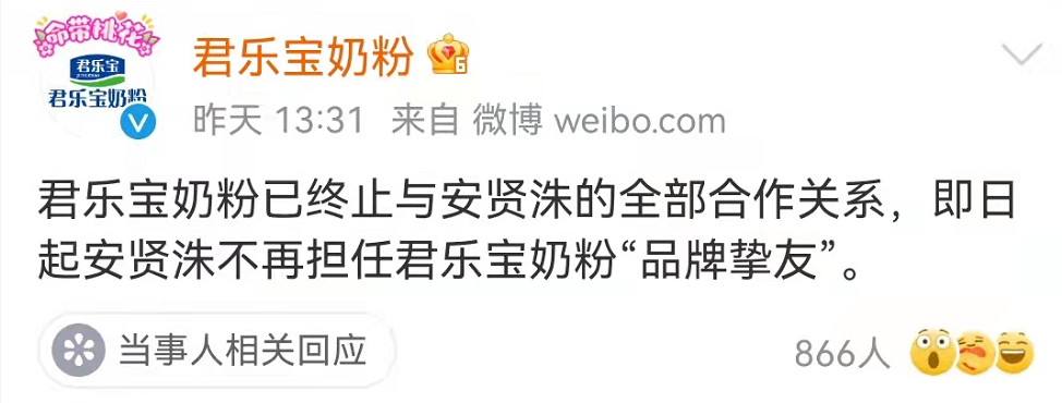 也要恭喜云米,没想到赚的首笔钱是违约金,还来得这么快。距离上次品牌火速解约明星,还是英菲尼迪终止与王力宏合作。在云米面前,日抛式代言的品牌都是弟弟,就是说云米可以申请吉尼斯世界纪录了。哪有什么岁月静好,只不过是有君乐宝在为品牌负重前行。可以找周大生抱团取暖啊,万一能够分享明星代言翻车经验呢。。。