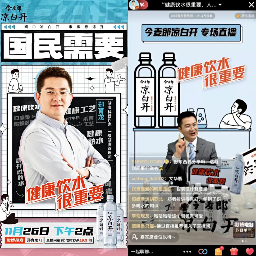 今麦郎凉白开首先携手健康科普作家郑育龙在线上开启了“国民需要,健康饮水很重要”的主题科普论坛,为用户传递品牌思想,抢占用户心智,从而将全民健康饮水理念普遍化。