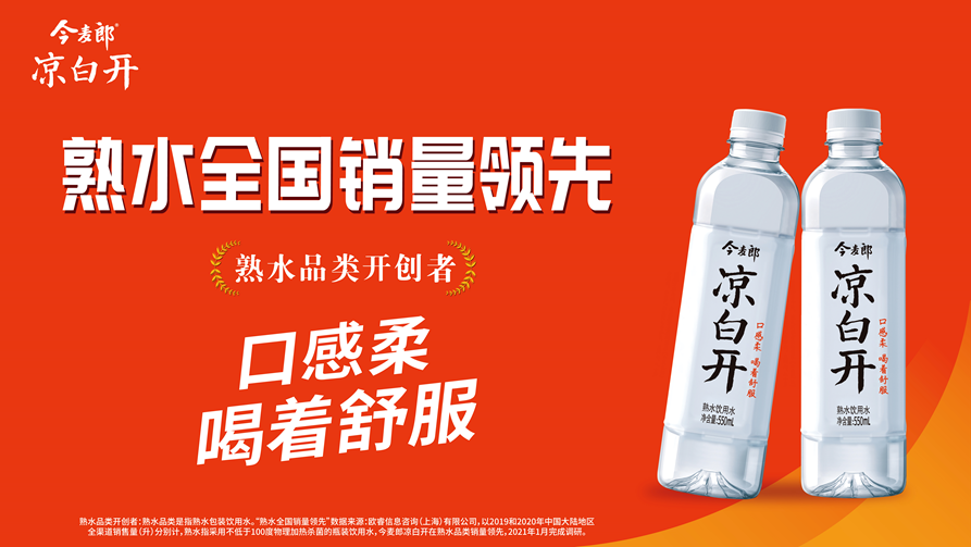 从2019年到2020年,今麦郎凉白开已经两年在瓶装水熟水品类达到全国销量领先,2021年更是在品牌传播和销量上都做出了不错的成绩。