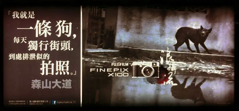 富士的广告中,森山大道形容自己的拍摄风格,“我就是一条狗,每天独行街头,到处排泄似的拍照。”