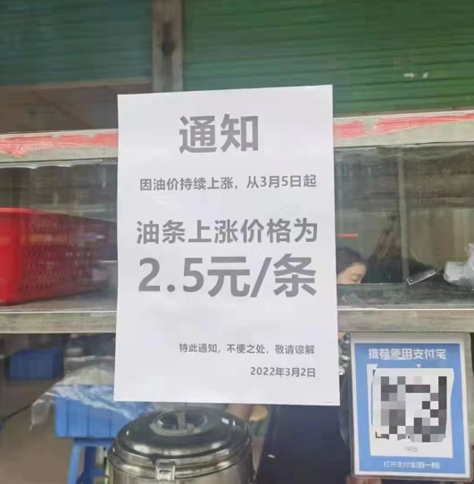 楼下早餐店的油条也涨价了。