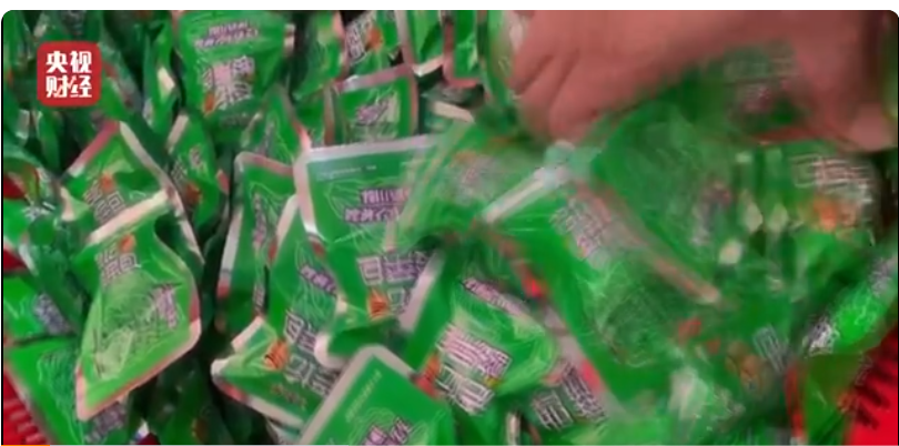 在央视财经的视频中,还出现了我们熟悉的方便面调味包。
