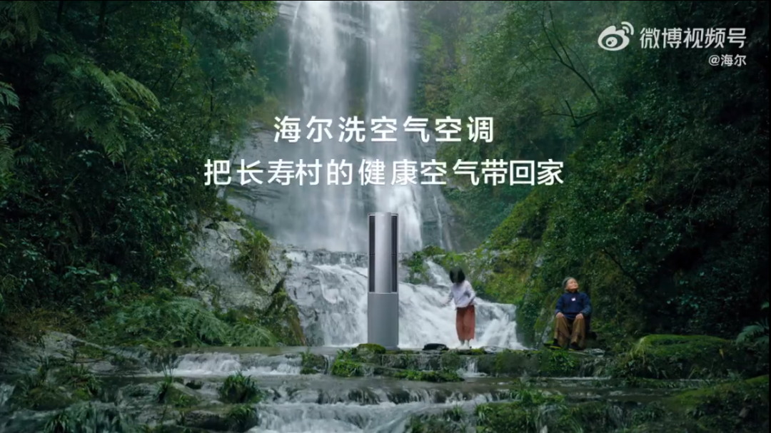 海尔空调挖掘健康空气与长寿之间的关联,并用长寿村100年前春雨后的空气类比海尔洗空气空调净化后的清新空气,突出海尔空调对空气的净化作用,做到了将产品卖点具象化,让用户轻松感知海尔“洗空气”空调带来的切身利益点——健康长寿。