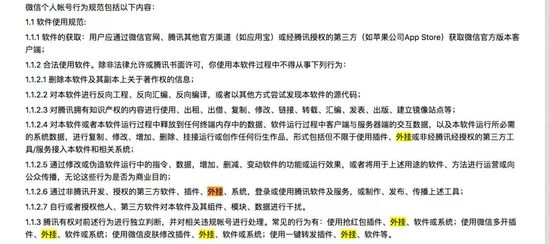 微信官方强调,打击外挂是常规动作,并非针对某一家管理工具,所有经用户投诉、并被核实确认有使用外挂行为的帐号,依据国家相关法律法规及《腾讯微信软件许可及服务协议》《微信个人帐号使用规范》 ,根据违规程度将按照阶梯性处罚原则进行限制,包括不限于限制功能、限制登录等处罚。