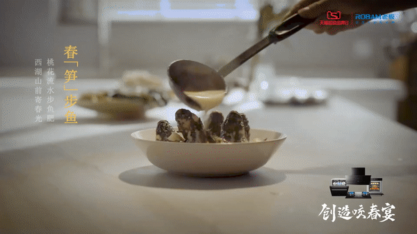 在第二个故事“踏春”中,做的是一道叫“鸡汁荠菜石榴包”的春令美食。这道菜的有形食材是荠菜,无形食材是一位母亲的舐犊情意,以及西北古老土地的回春气息。在第三个故事“寄春”中,观众共同目睹了“春笋步鱼”的成菜过程。这道菜的有形食材是西湖中的步鱼和江南春笋,无形食材是父女二人的彼此牵挂和生机盎然的江南春光。观众感人之所感,在共烹一道“春笋步鱼”的小事里想起自己的家人。最后一个故事“庆春”,带领观众神游大西南,用目光品鉴了一道“折耳根苗煎羊排”。在这道菜里,有看得见的西南特产折耳根,也有看不见的匠心和激情,以及大西南的独特风物。通过四组普通人的视角感受美食,感受人文和风土。老板电器借助感性沟通,将食材采集时的地气,凭炉而烹的锅气,汇聚成为人间烟火。深春时节讲烟火,在阳春白雪、小清新为主的春季营销潮流中,老板电器呈现出不一样的花火。以味觉感性调动情怀、亲情、激情,品牌形象与内核得到感性表达。02