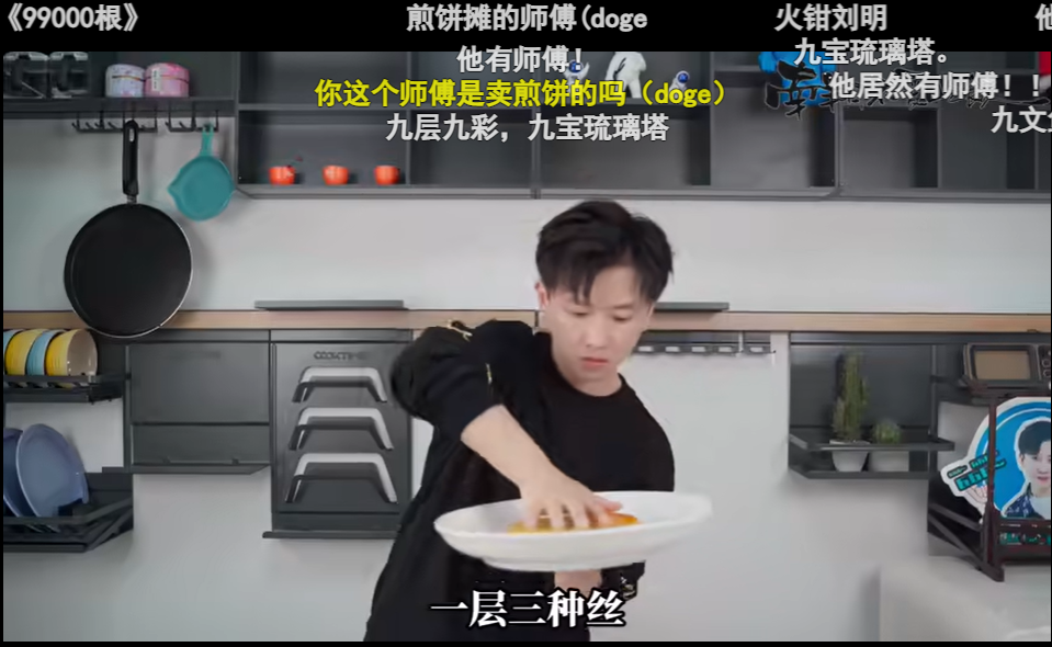 内容是造势的种子,恰当的平台与参与者则是土壤和水分。老板电器基于以上要素进行了准确的拿捏,成功激活品牌活动内涵和灵性。“创造咬春宴”的关键字是“宴”。俗话说,无人不成宴。为了邀请更多人赴宴,老板电器将目光投向了B站。这里有最具创意的美食up主,也有刷美食乐此不疲的吃货青年,其中一些up主受邀成为B站“咬春宴”的主厨。这位叫“南翔不爱吃饭”的up主做了一道叫“九扣三丝塔”的传统菜。