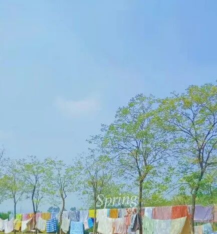 自己拍了宿舍楼下晒得一排排被子,真的好春天。一时半会组织不出语言,只留了一句“春天啦”