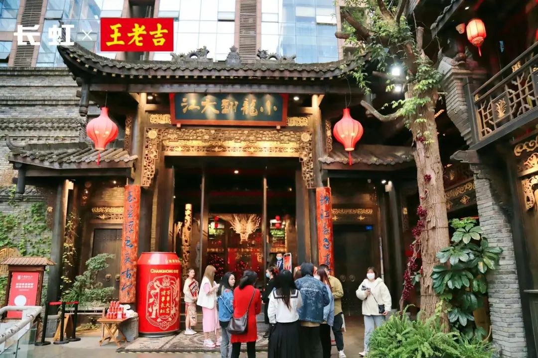 成都春熙路小龙翻大江火锅店门口的一个2米高的王老吉大红罐引得食客好奇,走近看会发现这还不是普通的王老吉红罐,而是长虹集团与王老吉联名推出的的大“虹”罐,罐身上写着“诸事长虹 万事大吉”。这是长虹与王老吉品牌跨界联动释放首个信号。