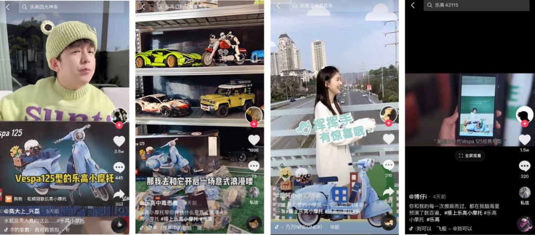 不设限的内容和形式产出了丰富多变的创意视频,现在,前往抖音搜索#搭上乐高小摩托,进入话题页即可回看UP主们的花式玩法。