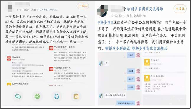 如果这个时候商家不进行退款,那么这些“白嫖党”还会主动邀请平台介入。一位拼多多商家曾遇到过“白嫖党”,顾客2019年买的衣服,2021年申请退款客服介入,客服直接给退。