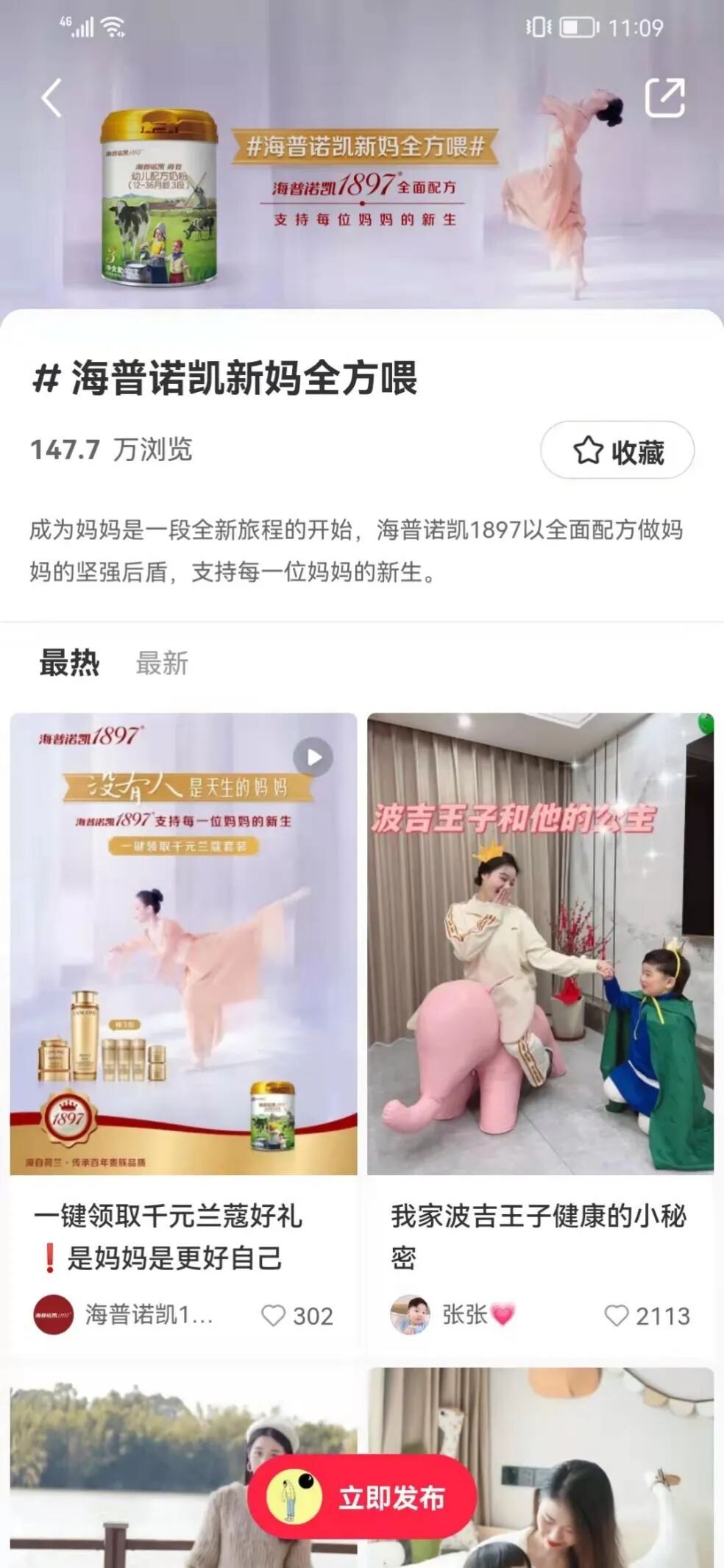 在小红书平台,海普诺凯1897发起了#海普诺凯新妈全方喂#活动,打造“海普新生妈妈的成长旅程”,借助专家背书 +经验妈妈分享+母婴KOL持续发声等动作,从“全面科学的营养配方奶粉产品”和“喂养知识教育领域的专业经验”双角度助力新生妈妈解决问题。