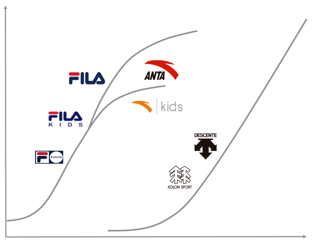 有业内好事者,改编了李白的一首打油诗,来盛赞安踏在过去三十年取得的成绩,不可谓不贴切。早年先是突破晋江系,建立面向全国的自主品牌安踏;接着收购斐乐、迪桑特等国外品牌,建立多元化品牌矩阵;最后主品牌安踏以二次创业的姿态下场再创佳绩并延续至今。用“点额即成龙,归来非凡鱼”形容安踏过去30年先后开拓的三个增长曲线并不过分。只是当鲤鱼跃过龙门,刚刚完成化龙的安踏如何在多元化中找到自己的主心骨,成了新的问题。一方面过去十年间,一直作为核心动力引擎的品牌斐乐面临降速;另一方面准备接替斐乐成为动力新引擎的主品牌安踏尚处于二次创业转型中。眼下,对于正在上演空中接力更换引擎的安踏来说,高增速下引发熄火可能随时发生。