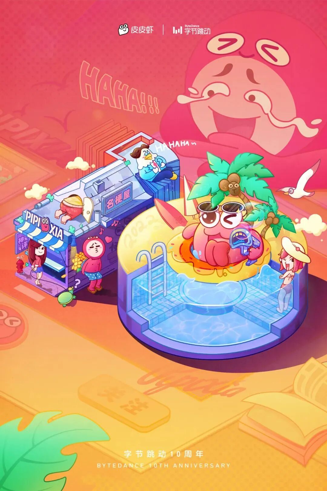 今年,字节跳动延续往年的风格,以数字“10”作为icon,并运用到自己旗下各大APP的场景里。