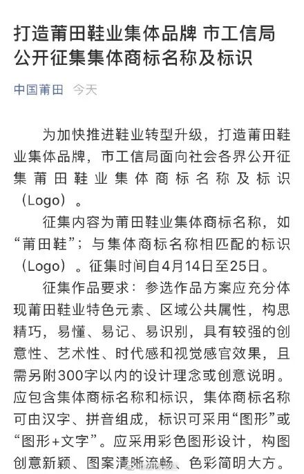 所以官方在去年就开始征集莆田鞋logo