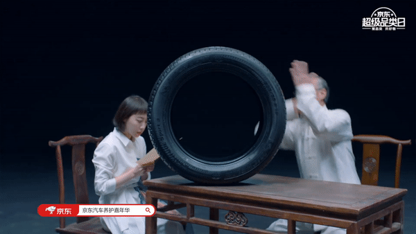 短片在利用趣味调动起观众兴趣的同时,京东汽车也借魔性的剧情植入“养车”商品,完成一种专业形象的跨界借用。