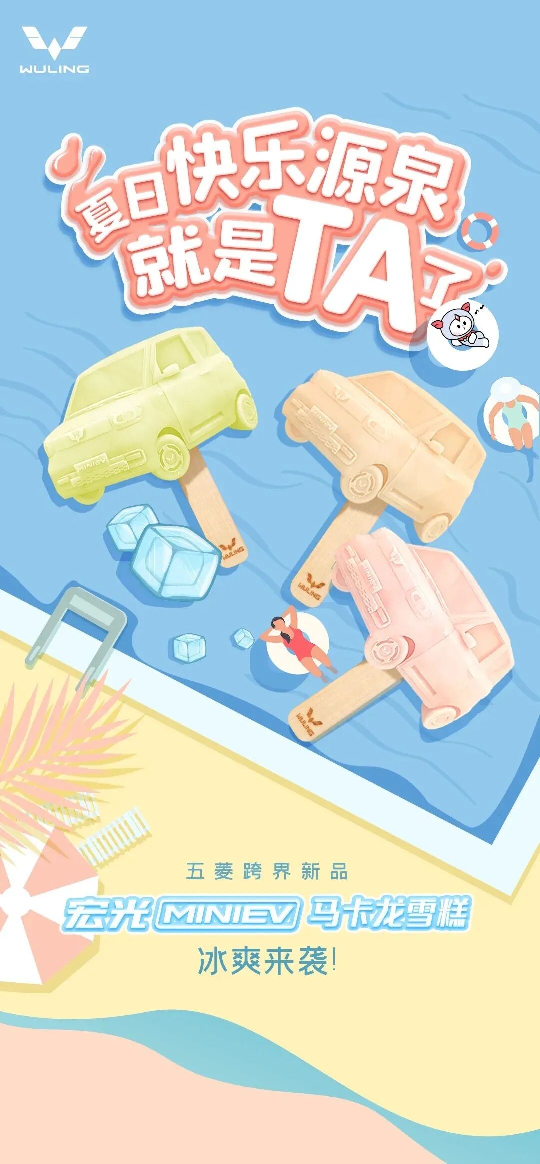 顺应马卡龙色冰淇淋,五菱还模仿网红经典雪糕,推出了汽车造型的马卡龙雪糕,积极迎合潮流热点,和年轻人玩到一起去。
