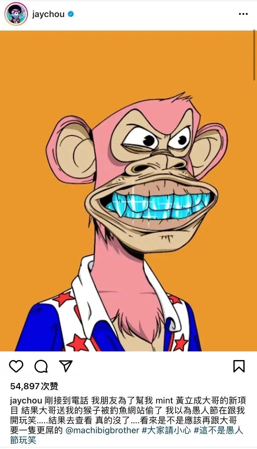 不过,NFT也不是毫无风险的。前段时间,周杰伦称自己的NFT被盗,就是这个“无聊猿”。