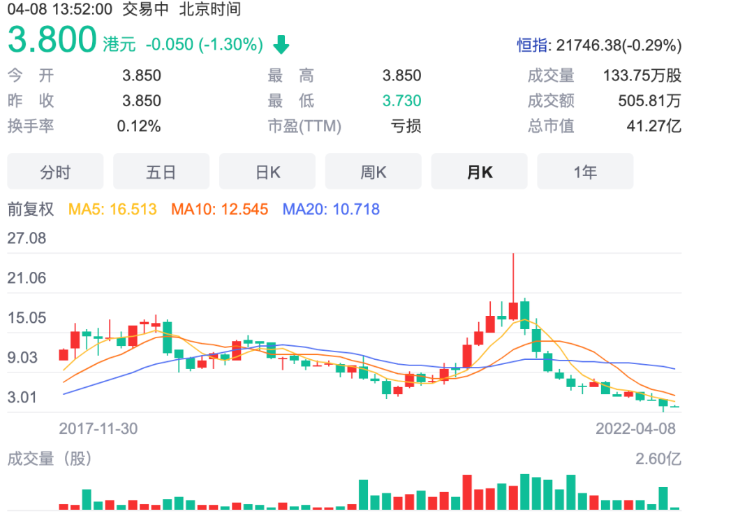 呷哺呷哺的股价除在二月末上涨之后,开启一路下跌,当前报3.80港元/股,总市值41.27亿港元。