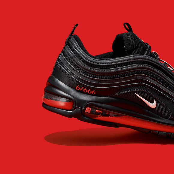 鞋子以Nike Air Max 97为原型设计,据介绍,鞋子在气垫中注入了30毫升墨水和1滴人血。