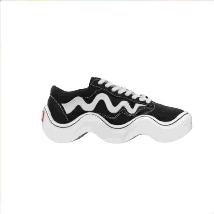 不是你眼神出了问题,这是由设计创意团队MSCHF与歌手Tyga合作发布的一款基于Vans经典款鞋子的设计,并取名为“Wavy Baby” 。