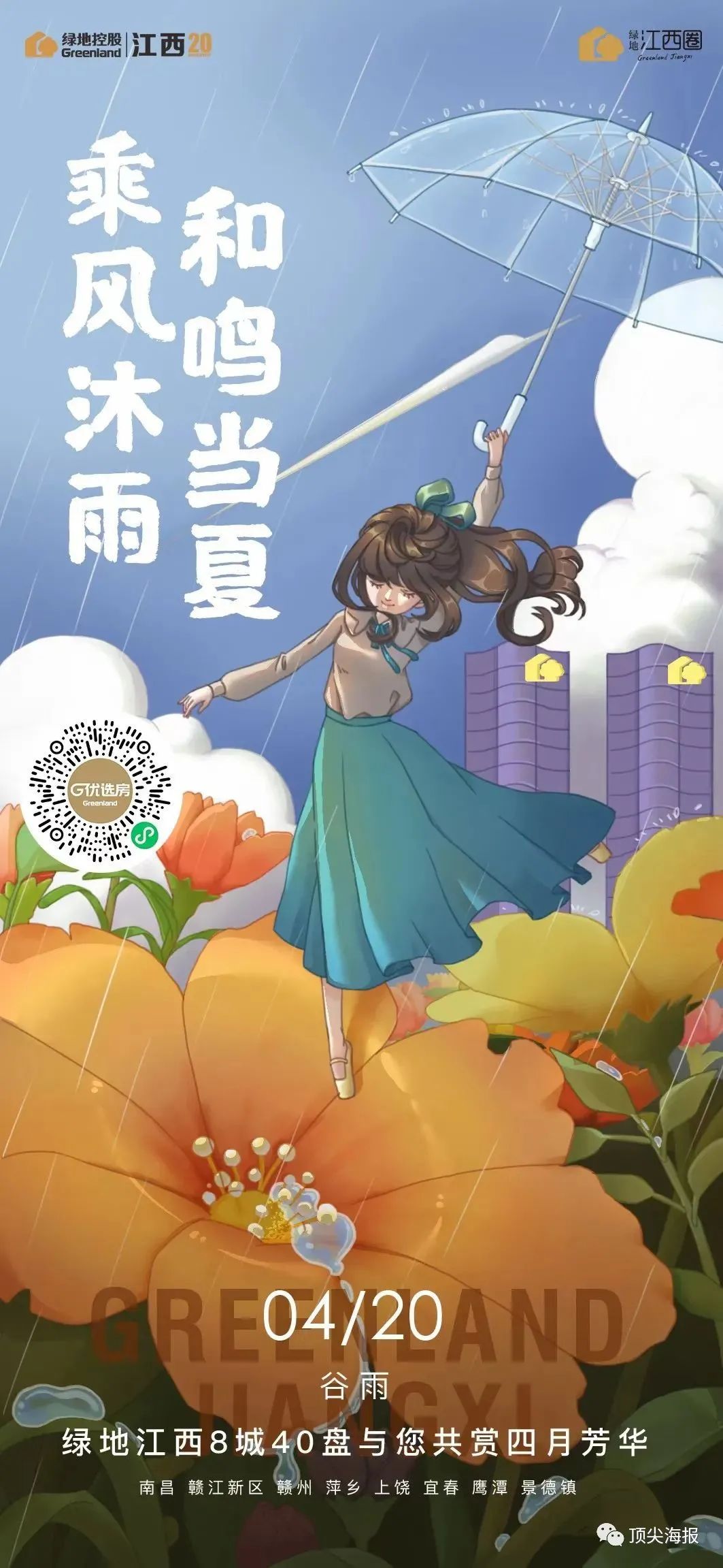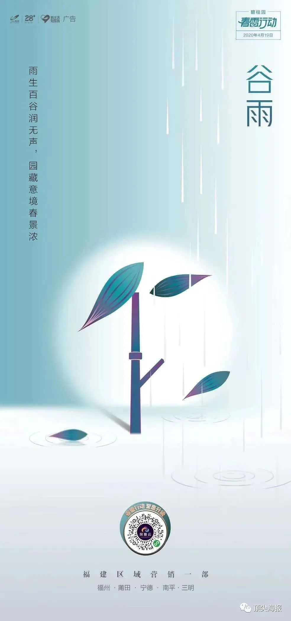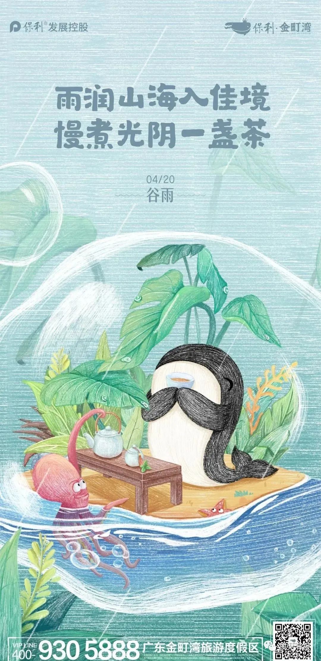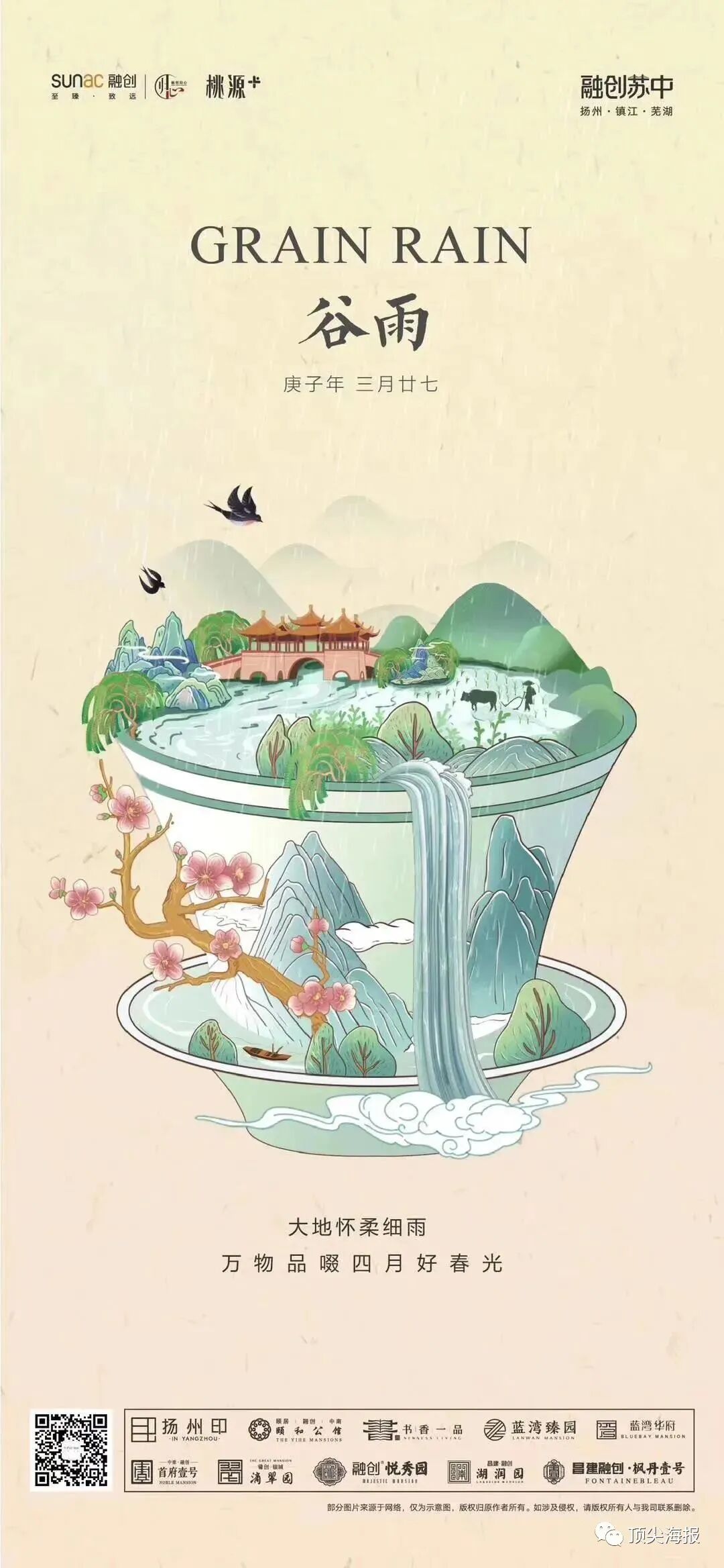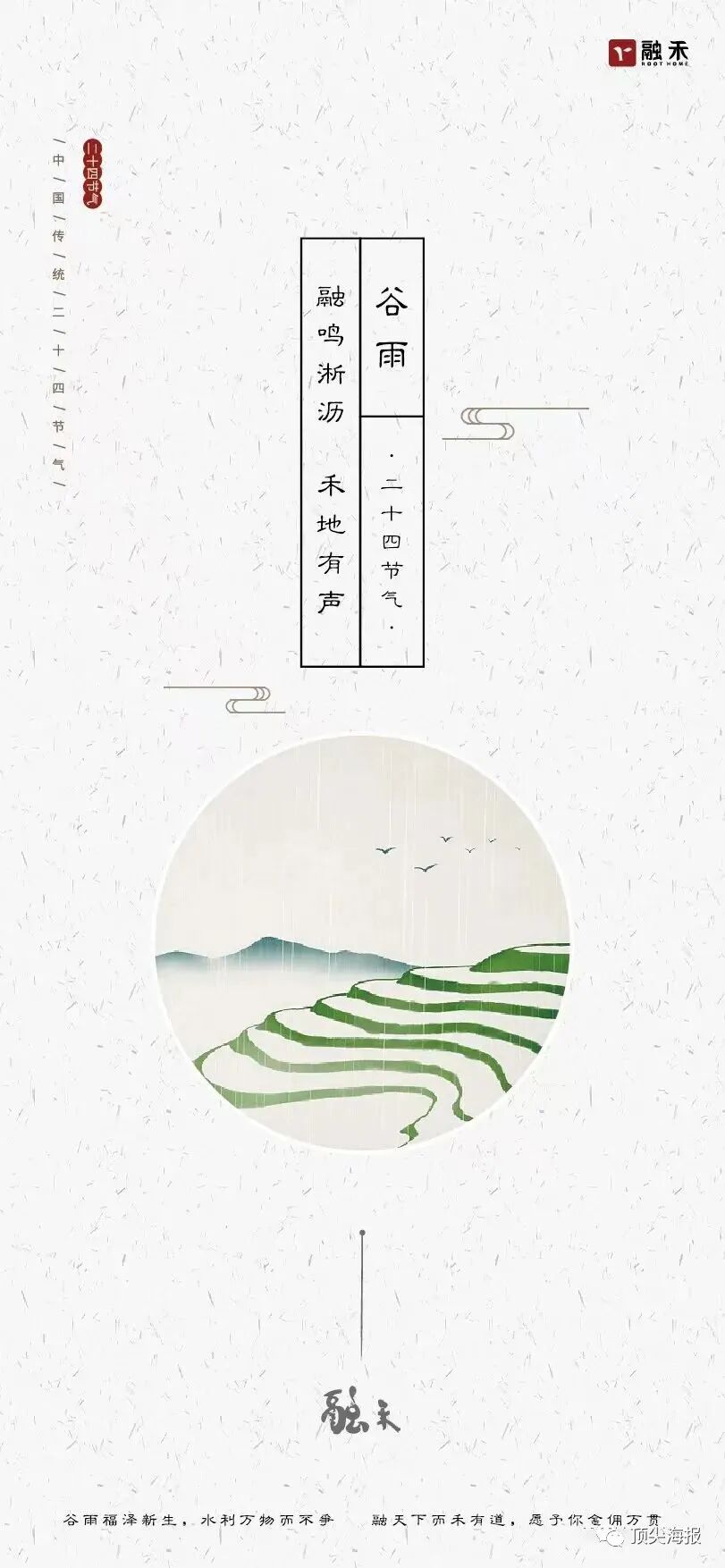 谷雨,是春季最后一个节气,谷雨取自“雨生百谷“之意。雨生百谷,万物逢时,一场春雨承载着庄稼收获的希望,在悠悠细雨中格外朦胧诗意,品牌们的借势海报也充满了诗情画意,描绘出春夏交替的美景,和海豹君一起抓住春天的尾巴,让创意无限翻倍!!!