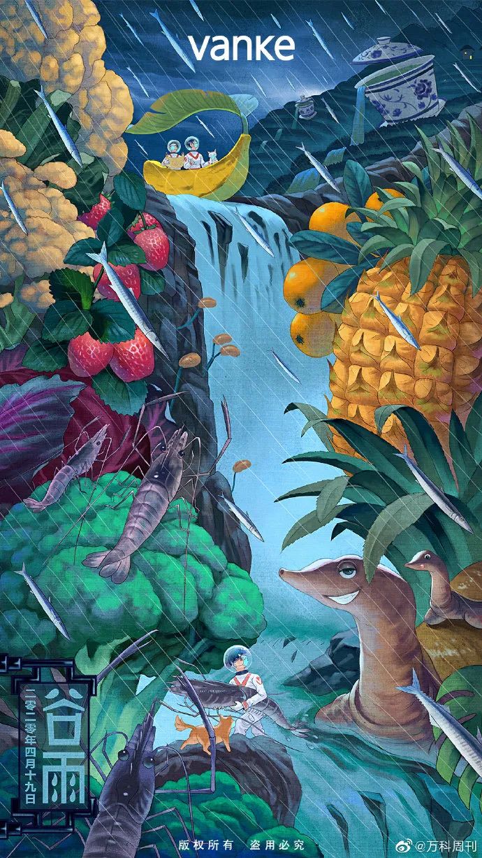 今日#谷雨#春雨和想象力,都能滋养万物。今天的锁屏壁纸你收到了吗?