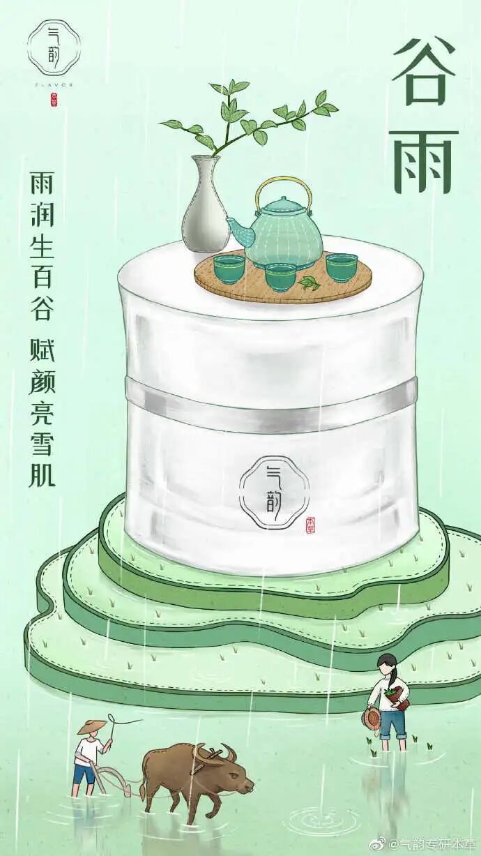 #谷雨#雨生百谷,煎茶赏花。春季最后的节气,把握肌肤养白好时机。气韵肌源奢白晶采雪颜霜,本草温和萃取,润养奢白美肌。谷雨时节,补进水,焕出白。