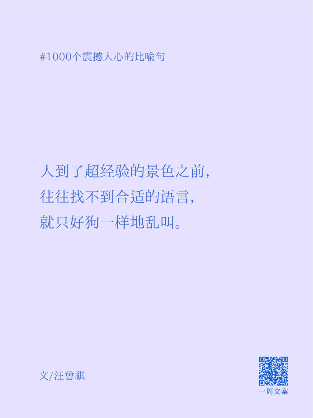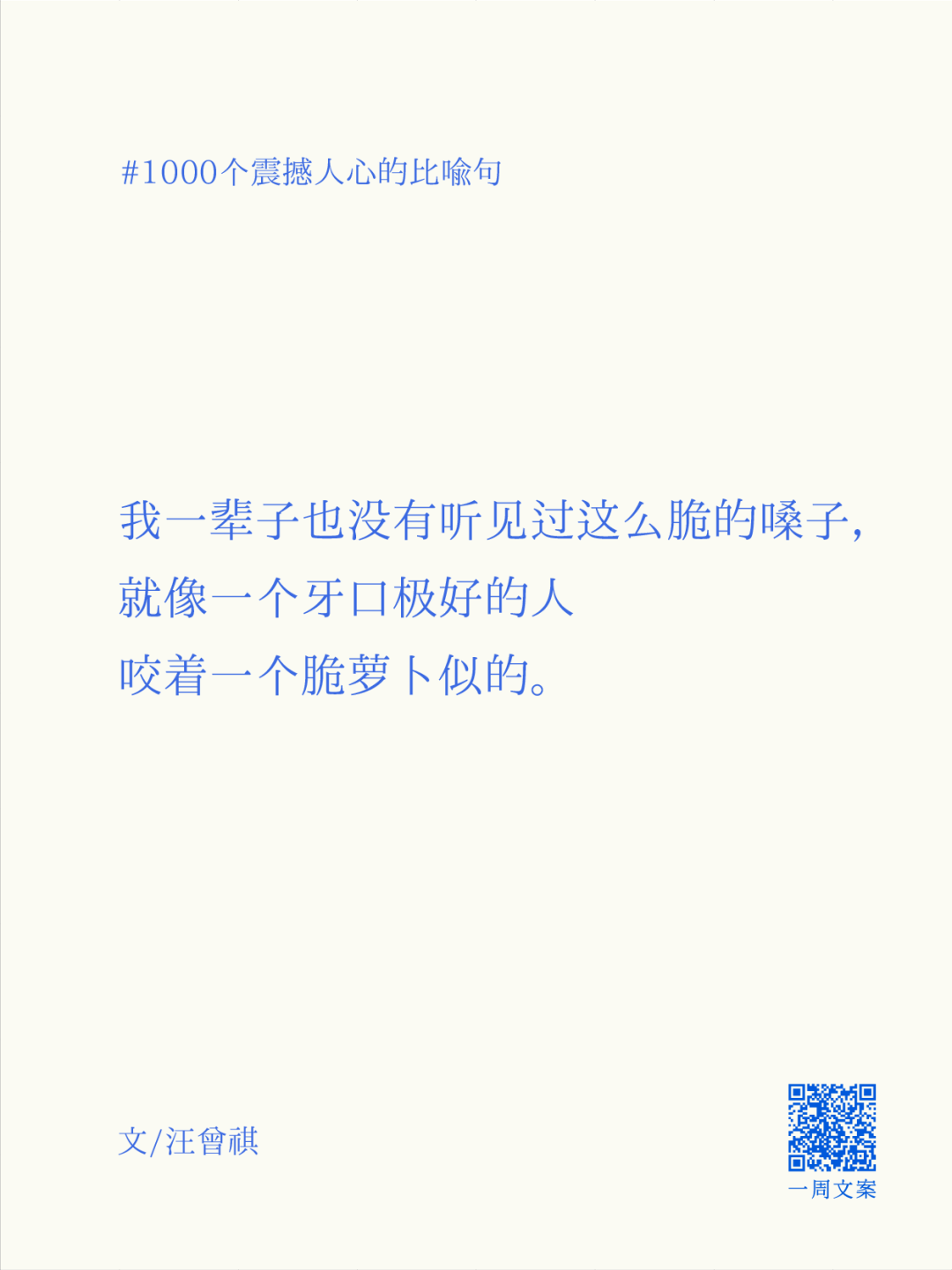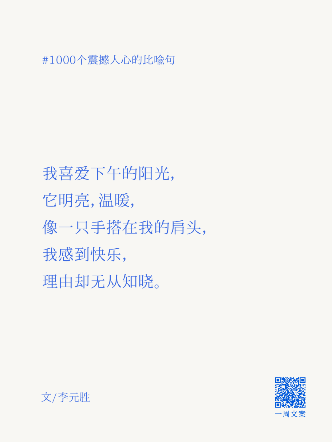好的比喻,既能帮助读者更准确地理解作者的想法和观点,又能让作者的个人情绪、思想、幽默感等等得到更深刻的表达。「1000个震撼人心的比喻句」栏目分享来自知名和不知名作者的精妙比喻句,希望给你的日常写作提供一点不同的创作灵感和思考角度。本文由首席营销官入驻KOL授权发布,转载请联系该作者