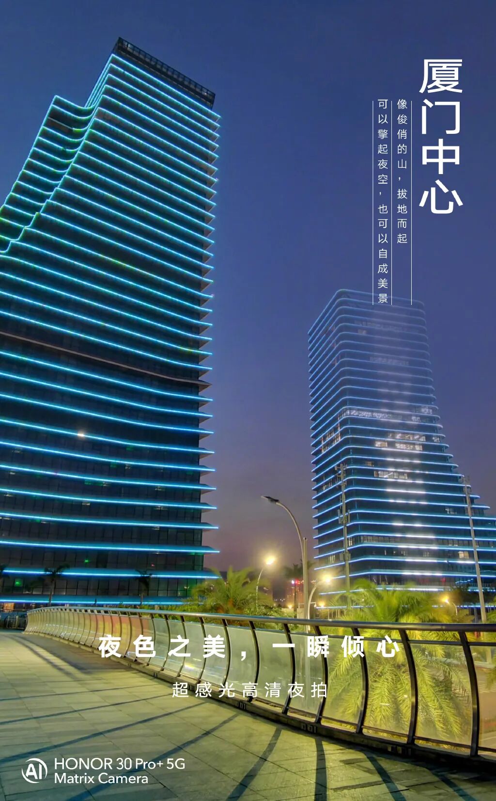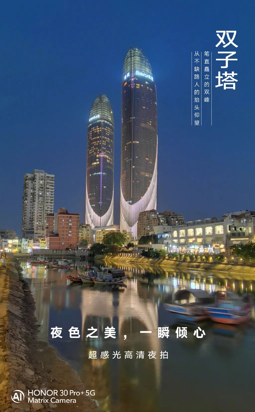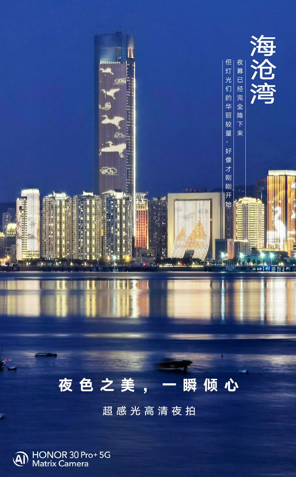 最近荣耀就用荣耀30,拿深圳夜色作为布景,将深圳地标“醉美”夜色的一面定格下来,并且还给深圳写了九句文案。 可以说句句撩人,演绎了“夜色之美,一瞬倾心”的一面。晒着天上月光,迎着地上灯光。美得各不一样,但当你把它们同框时,也能交相辉映。