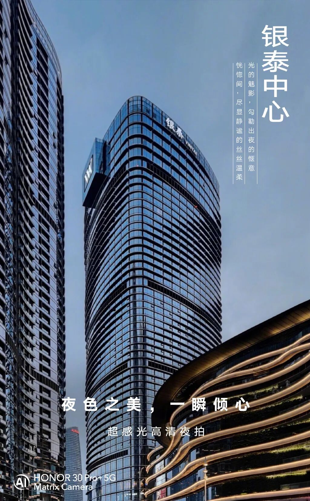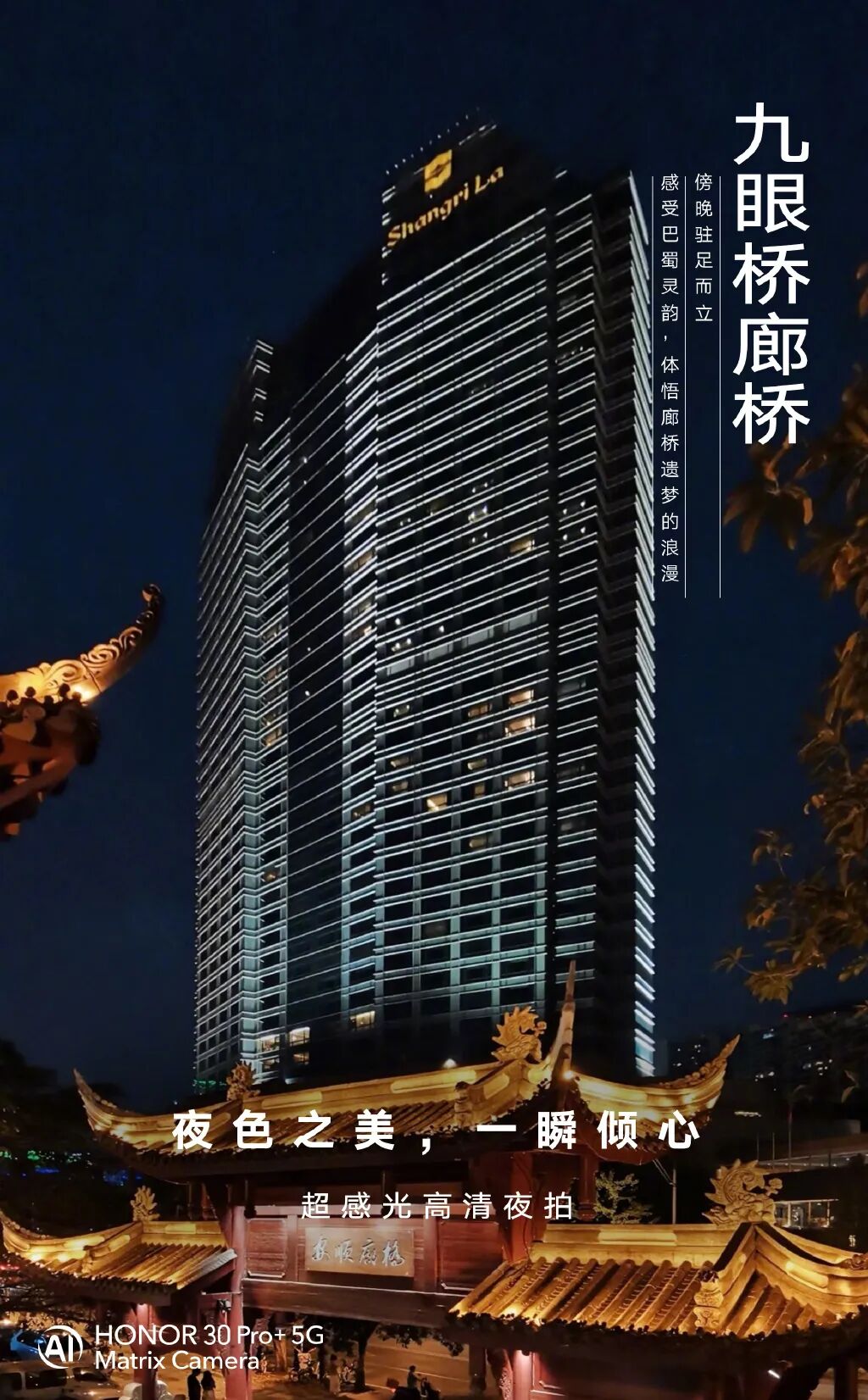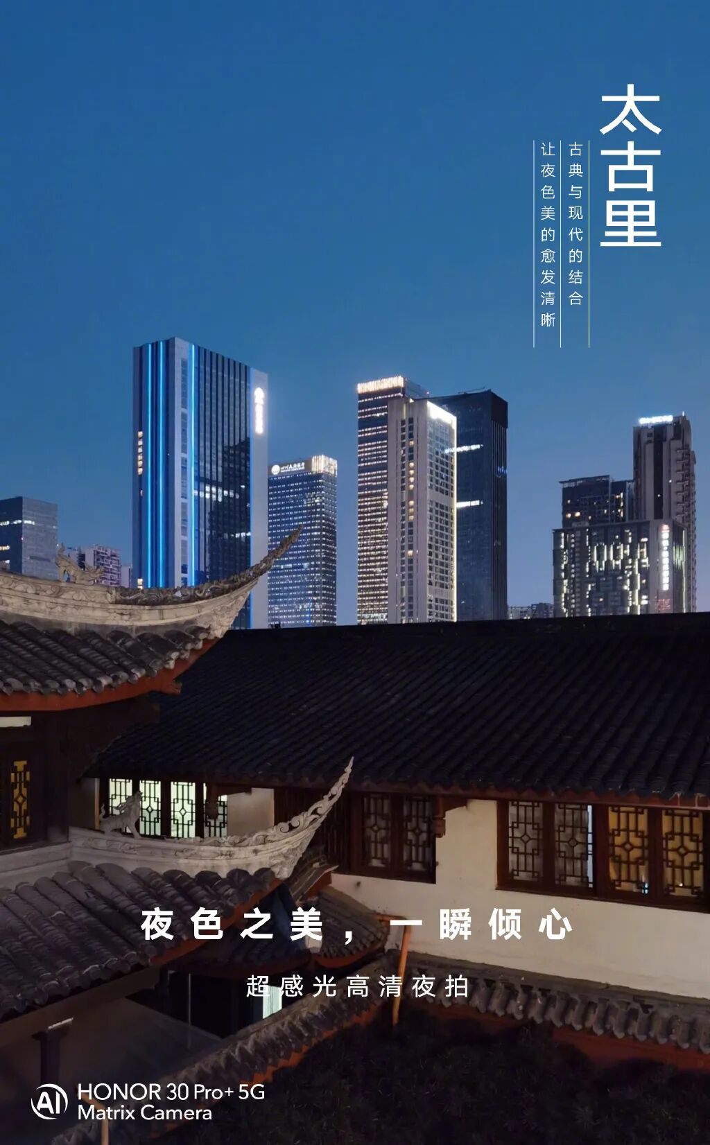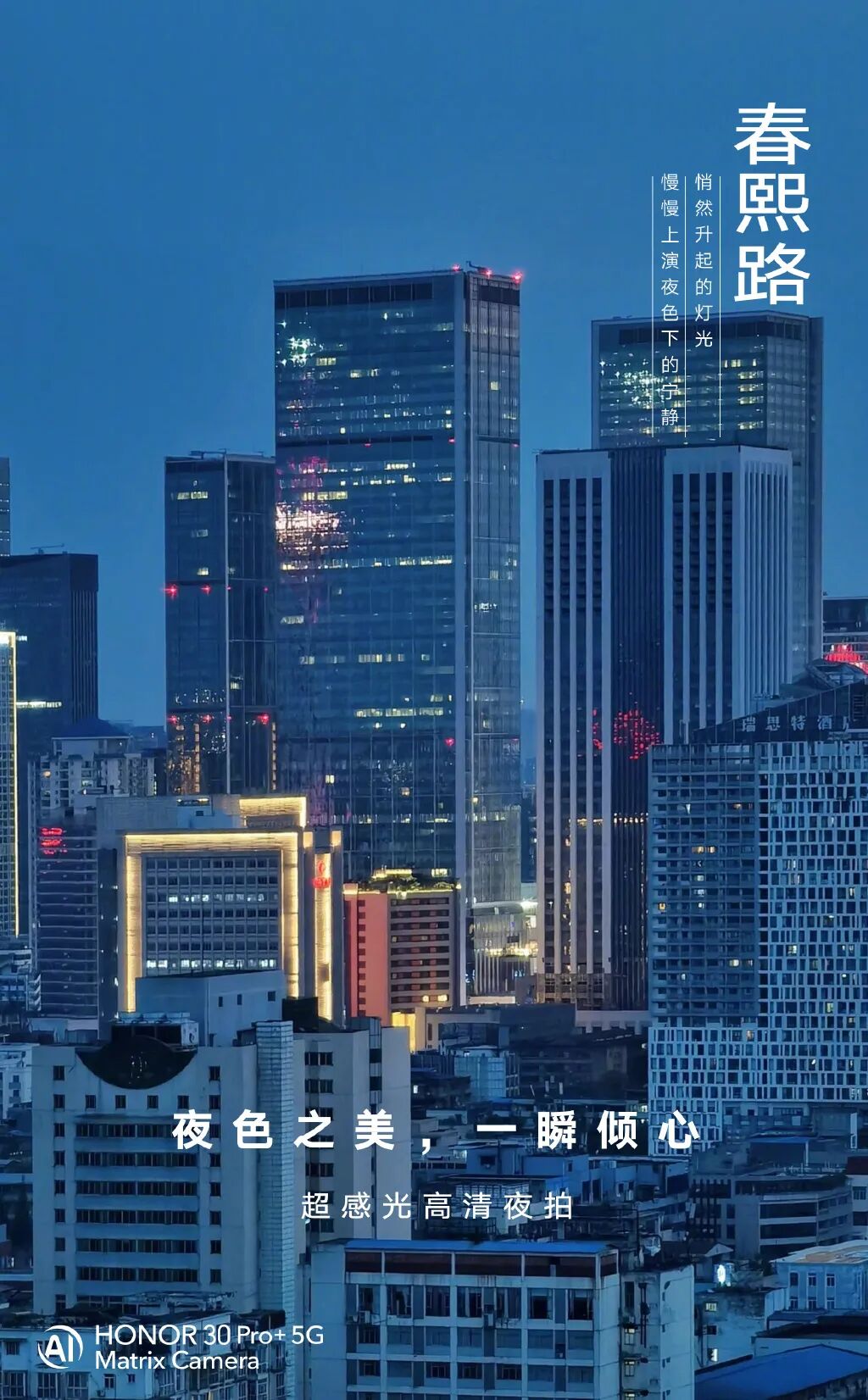 最后这也体现了品牌用内容说话,避免了一套整齐划一的产品说辞书,而是用#荣耀30#系列超感光高清夜拍,将每个城市富有魅力的夜色,呈现到每个人面前。迷离的灯光,变幻的色彩,为这座城市增添了诗情画意……利用反向操作的创意落地,以地标同框照,配合富有故事感的文案,感染每个荣耀手机的用户。可谓真正用产品说话,靠内容致胜。在用夜色情绪撩拨大众内心的过程中,让他们整个身心融入这座城市视觉盛宴中。进而把一张张夜拍体验图片,做成了品牌特色内容,强化了荣耀30系列的超感光夜拍能力,提升受众对于“随时点亮倾心夜色”的感知。 不得不说,这一次用#荣耀30#系列超感光高清夜拍形式,将光与影的美学有效结合:奉上美丽的城市夜景,探索城市夜色的魅力,也点亮每个人心里的那盏灯。