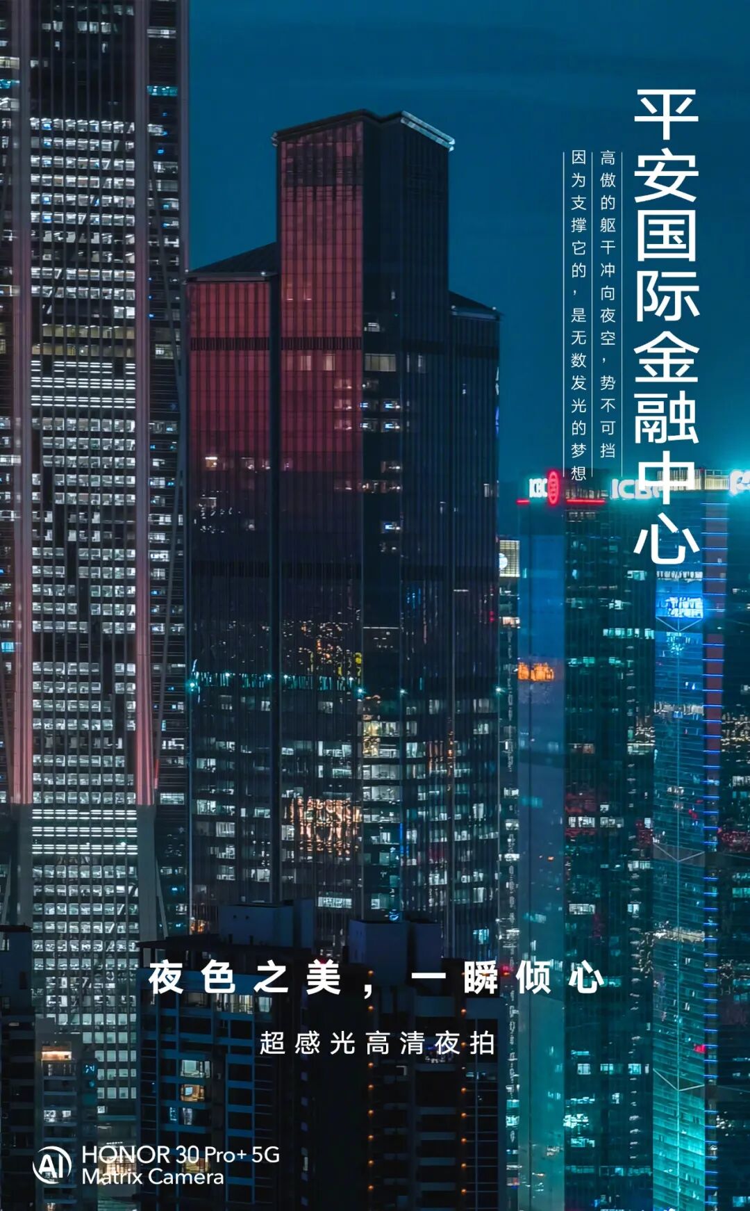 平安国际金融中心像一个横冲直撞的20岁年轻人,充满朝气富有冲劲向上跑,想要给这个紧张的城市,制造一些惊喜的风浪。除了深圳,荣耀手机还一口气撩了合肥、厦门、成都、乌镇、南京、上海、武汉、西安,把这些地标的城市底色装进手机里。为什么荣耀会选择地标和夜色的元素,构成这次的小而美的创意,背后其实也有不少值得探索的地方。以深圳这个不夜城为例,相信无论是东门老街还是平安国际金融中心,在这些城市地标带里,时时刻刻上演我们每个人不同的故事,记录着大家奋斗的片段和荣耀时刻。这也是为什么荣耀会选择地标来勾勒城市夜景。以云视角的方式,捕捉每个城市地标的不同风景,带着用户俯瞰我们熟悉的城市,引发作为当地人的共鸣感和归属感。地标,就像是一座城市的象征,更是一张名片的无形资产。一座座高楼大厦的地标,不仅筑起了繁华都市,更是托起了美丽绚丽梦想。再加上地标“同框照”,也是很多旅行者的一种拍照喜好。对于每个在城市打拼的人,他们每天生活在高楼密布当中,却难以用云端的视角,放慢脚步好好欣赏自己城市的地标夜景。比如深圳最不缺的就是高楼大厦,但是品牌怎么让大家重新关注到它们身上?为了给这些高楼大厦加入更多的城市温度,我们可以看到荣耀在海报里赋予了有趣的角色,塑造了人格化形象:可能是一对合体营业的夜精灵CP,或是一颗耀眼的钻石,也可能是一片硬核的钢铁丛林......荣耀无疑在为每一座建筑物,进行情感化设计,塑造一个个看得见、感受得到的想象力角色。而通过富有感情色彩的角色加持,以及将夜灯夜景与地标惊艳“同框”,让大家从“夜”的题材出发,重新审视这座城市地标的温柔,更加衬托出一座城市独特的魅力。就像深圳作为一个年轻而充满活力的深圳,其身上拥有的拼搏、梦想、不夜城的标签早已深入人心。又比如上海,摩登、优雅就是它的符号;南京,就像一个散发着灵气和诗意的女子。提到深圳,有的人想到的是高楼大厦平地而起,霓虹灯闪烁、灯红酒绿的场景,也有的人想到的是梦想和追逐。正如荣耀官微所说的,璀璨闪耀的夜景,仿佛就是它魅力和自信的注脚。夜景,是黑暗里的精灵流光溢彩。而前往大城市奋斗的每个人,都怀揣着一份梦想和激情活力,每一份付出终究会收获属于自己的精彩。因此,每个为梦打拼的城市人,就是城市最真实的模样。荣耀将夜色和地标融合形成璀璨闪耀的夜景,期望将高度契合的两者结合,碰撞出全新夜色最美时刻,营造“站在塔顶,直上云端”的唯美感和高级感;激发起大家对于这份坚守城市的信念,只要不忘初心,梦想依旧可期,让心中那份归属感从心里油然而生,也进一步释放荣耀30系列手机的拍照亮点。