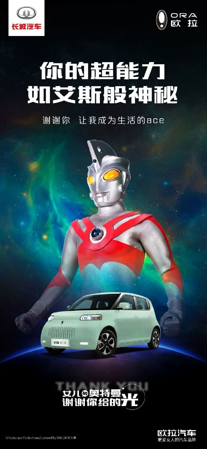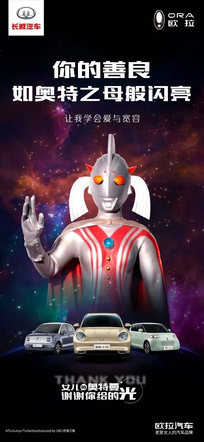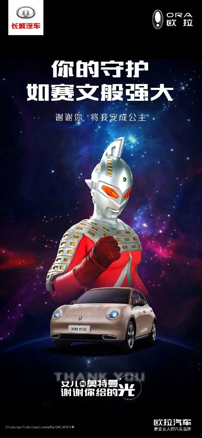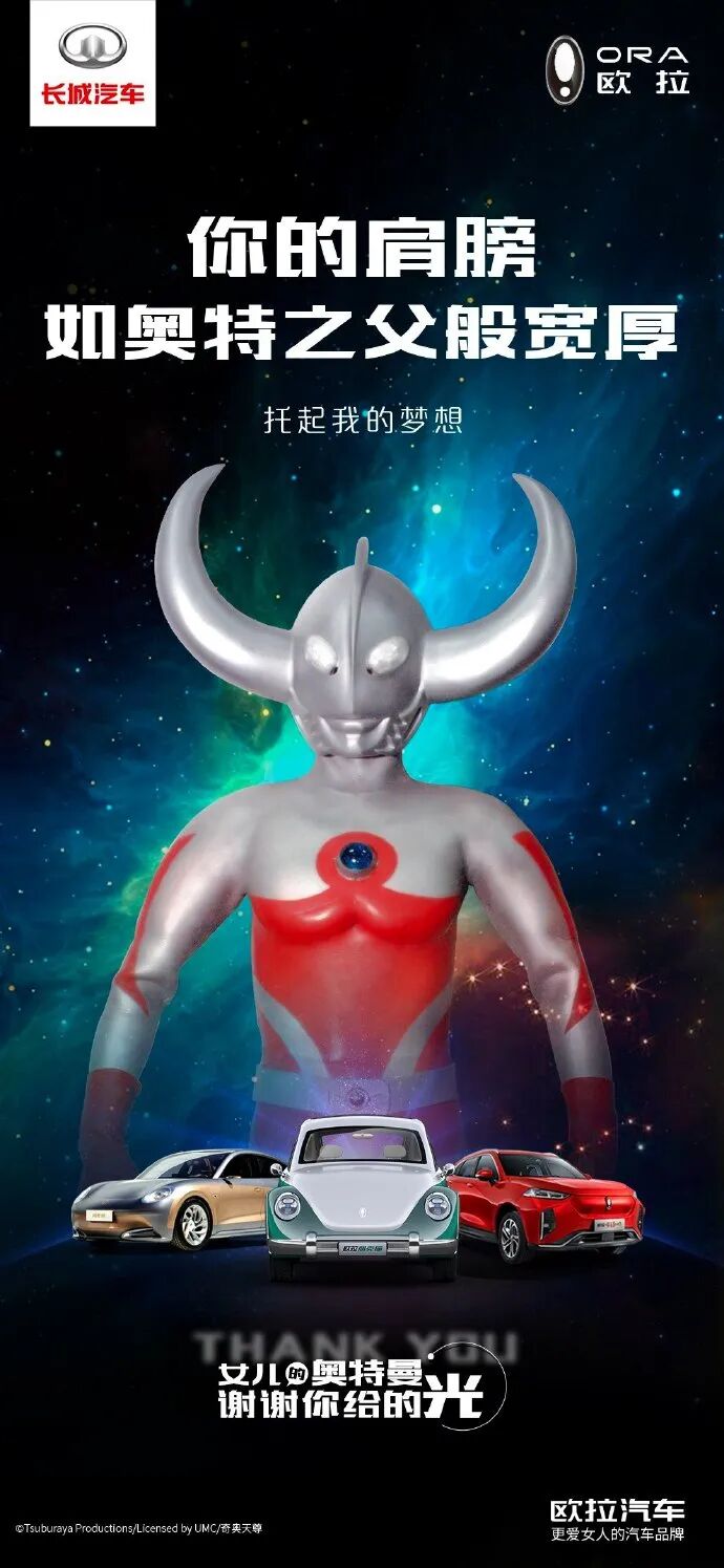 在迪迦奥特曼25周年,一加重磅巨制《光之9R·奇迹再现》,献给光之少年们。欧拉汽车一口气召集了奥特曼的大半个家族,针对不同的奥特曼角色和定位,匹配父亲的闪光特质,在父亲节送上了一份特别的贺礼。欧米茄曾推出奥特曼限量版腕表,采用特制的六角形表盒造型,以致敬怪兽特攻队使用的六角形工作台。