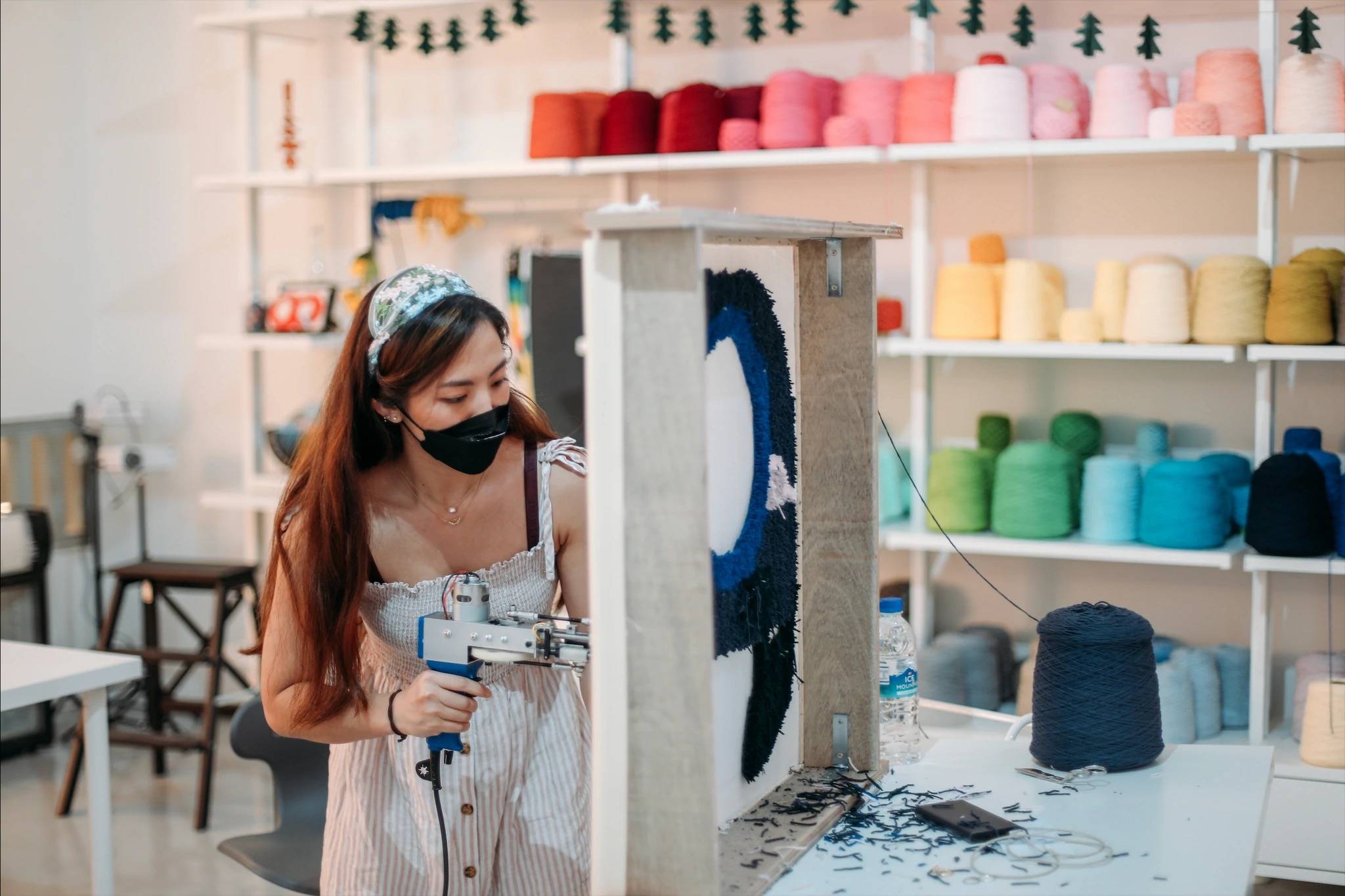 可以看出,年轻人正在不断寻求新潮的减压玩法,tufting恰巧就符合现在年轻人选择娱乐项目的大部分关键要素,新潮有趣的同时又能缓解压力。一位体验过的网友说,“tufting和十字绣差不太多,但是当我拿起簇绒枪在画布上‘突突突’的时候,有一种莫名的爽感、很解压,而且看着不同颜色的毛线逐渐填满画布上的空白,并且最终变成自己的一幅‘画’,也非常有成就感。”