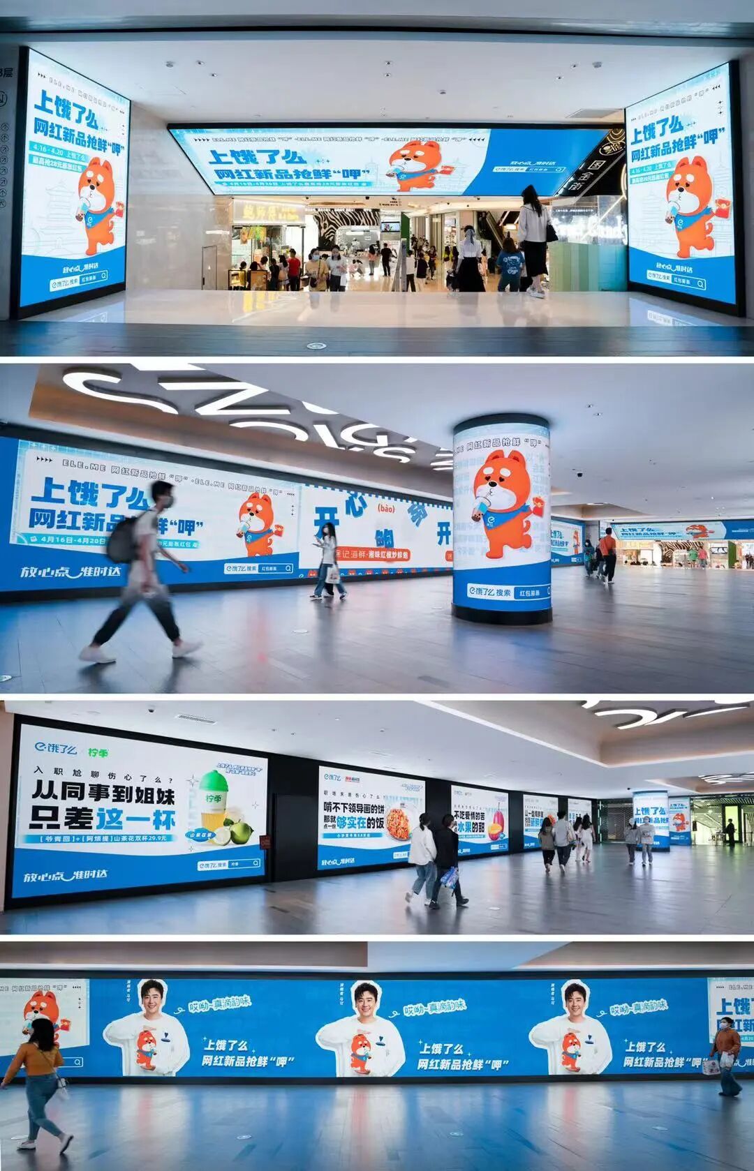 除了线上海报的打造,品牌还在线下地铁进行大范围的广告宣传曝光,几乎承包了所有的广告位,小到柱子上的广告包围,大到一路都是,饿了么真正实现了全方位的覆盖宣传。