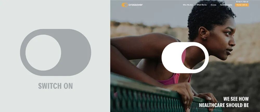 3年前,美国医疗保健初创公司 Crossover Health 更换LOGO,新LOGO和法国的 SNCF Connect 一样,用了一个我们在手机中经常用到的开关按钮。