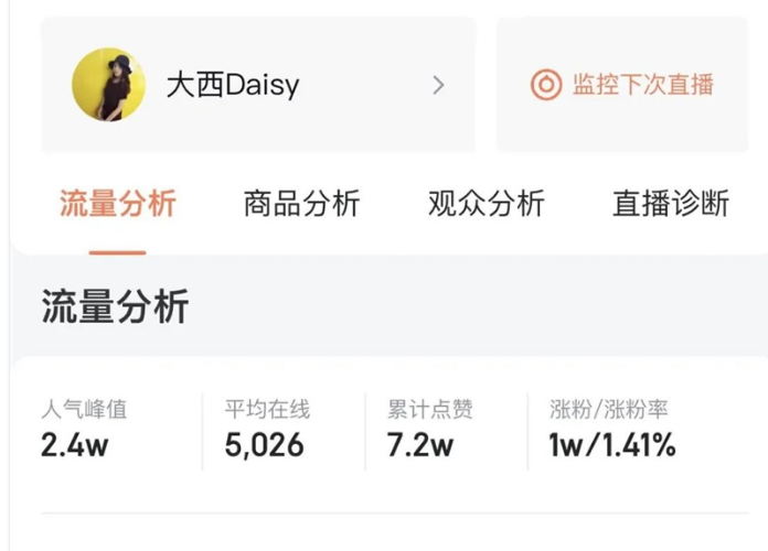 数据显示,这场直播持续了1小时51分。直播中观看人次突破70万,人气峰值达到2.4万,平均在线5000人以上。