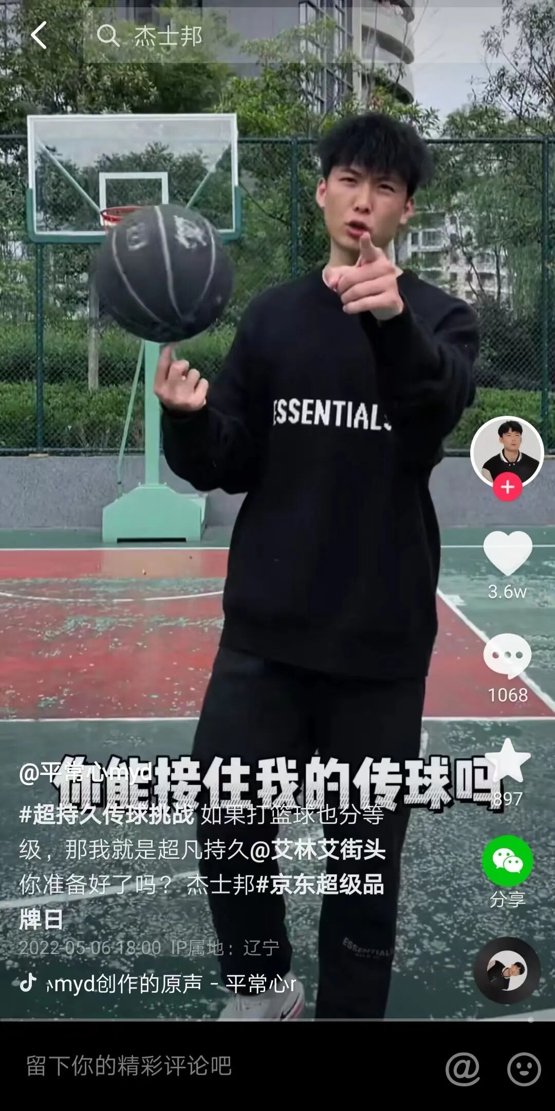 由周锐传出第一球,更是杰士邦的满满“心机”。从草根球员到冠军球星,周锐敢拼敢赢的人生经历,和杰士邦“越持久越热爱”的品牌态度达成了完美契合。同时,作为路人王2021年度总冠军,周锐作为活动发起者,号召力十足,他带动了更多路人王球员、篮球高手、篮球爱好者参与到活动中。而NBA解说王猛的加入,更是如虎添翼,实现了杰士邦和腾讯体育NBA直播的深度绑定,也让活动进一步渗透到了篮球圈层,助推了整个传播在篮球圈的声量。为了让整个营销能够突破篮球圈,杰士邦同样有环环相扣的策略。尽管杰士邦发起的一场关于篮球的传球挑战,但这并不是技术的比拼,而是脑洞的PK。这就意味着,你的传球姿势可以是专业的,也可以是恶搞的。因此,杰士邦联动了众多非篮球领域的达人参与到了活动挑战中。众多kol奇招百出,硬核、舞蹈、搞笑等千奇百怪的传球姿势,降低了整个活动的参与门槛,大大吸引了更多圈层的网友参与。以抖音作为主要传播阵地的同时,杰士邦的“超持久传球挑战”还在微博、虎扑两个社交平台同步进行。矩阵式的传播渠道铺设,可以最大限度地实现对各圈层人群的覆盖,助推传播声量,形成出圈之势。截至目前,杰士邦#超持久传球挑战#相关话题已经在全网突破了1100W+,网友的UGC内容更是让人眼花缭乱。有人秀脑洞,有人秀球技,有人表达对生活的热爱,有人纪念持久的友谊……很显然,在相当成熟的策略布局下,杰士邦完成了一场占圈-出圈-破圈的营销campaign,声量引爆全网,不断强化着大众对杰士邦“持久”的记忆。03
