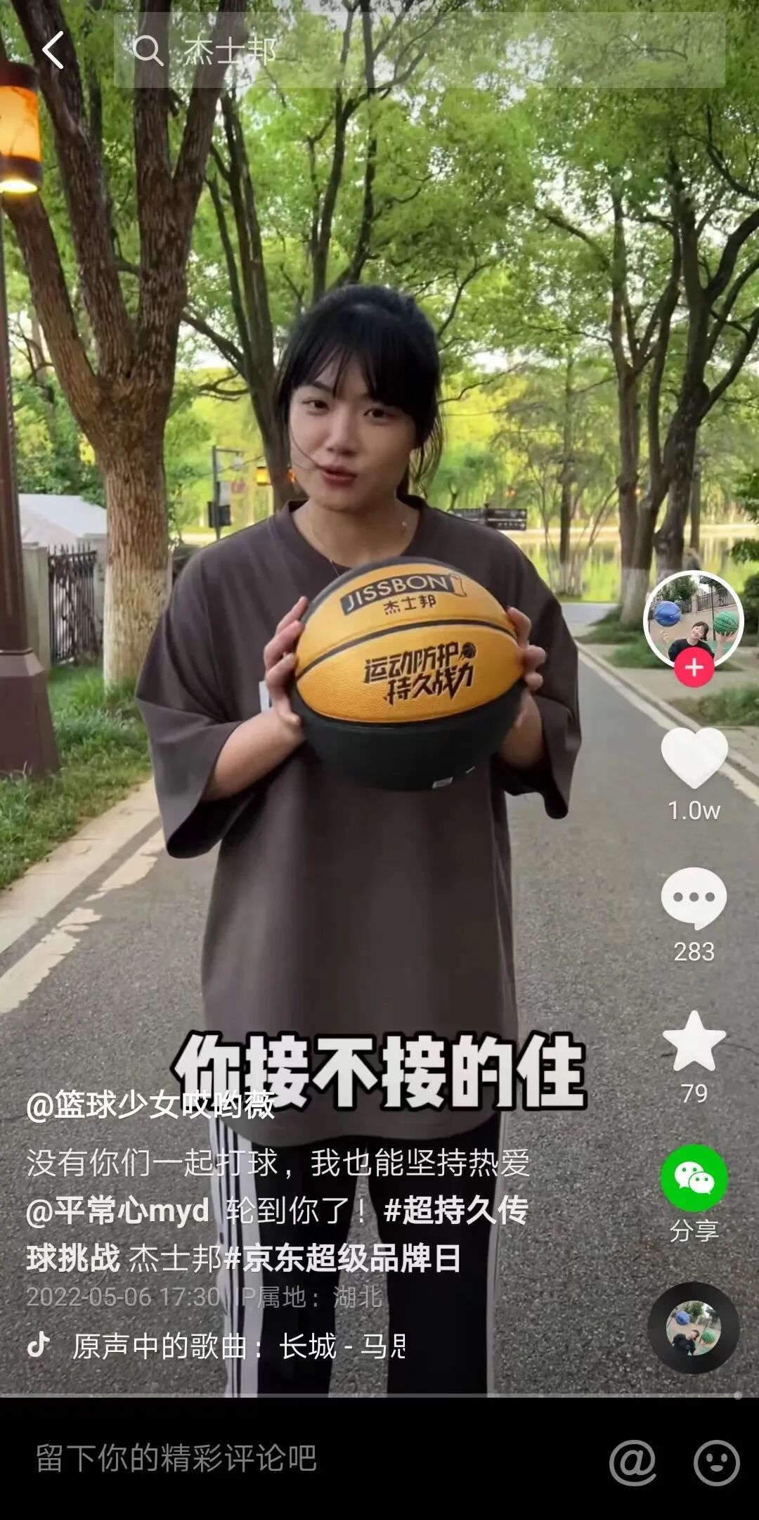 这是一场点名接力式传球。第一球,由路人王@周锐在抖音传出,随后,@韩曙光、@篮球少女哎呦薇、@平常心myd、@艾林艾街头等一众路人王球员、街球高手、职业球员等相继被召唤出来,他们用花式传球姿势,进行着一场持久接力。在名人kol的强大号召力下,更多网友自发加入其中。我们可以感受到,杰士邦的这场“超持久传球挑战”,已经不仅是一个有趣的品牌活动,而逐渐成为了一场有爱的全民社交。杰士邦发起这场营销campaign背后更深刻的立意和洞察,也开始浮出水面。在如今疫情肆虐的大环境下,很多人被困在家中,人与人之间的物理距离变得很远,想要打一场酣畅淋漓的篮球赛,几乎成为了奢望。杰士邦的这场隔空传球,则是为人们提供了一个线上渠道,通过互联网的social方式,表达对篮球、对运动的热爱。正如杰士邦这支TVC传达的那样,我们可以不管当下处于何种环境,可以不顾和他人的个体差异,只需要一腔热爱,就可以把很多人汇聚成一股力量,为热爱硬战到底,每一个个体都可以变得更强,找到前进的能量。这是非常有人文关怀、有温度的品牌行动。它用有趣、好玩的方式,消解了大众因疫情产生的焦虑、苦闷,纾解心情,分享热爱。这也是对“越持久越热爱”品牌价值的绝妙诠释。当花式传球姿势在网络上持久传递,人们之间也在产生更亲密的连接,人与人之间的情感距离会变得越来越近。02