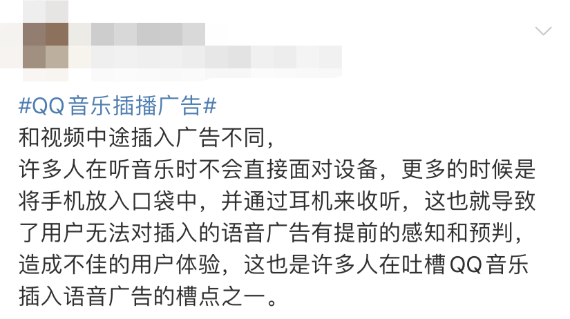 QQ音乐插入的语音广告,被网友戏谑为“插嘴广告”,插嘴广告一石激起千层浪,逼得网友微博知乎各路讨伐。