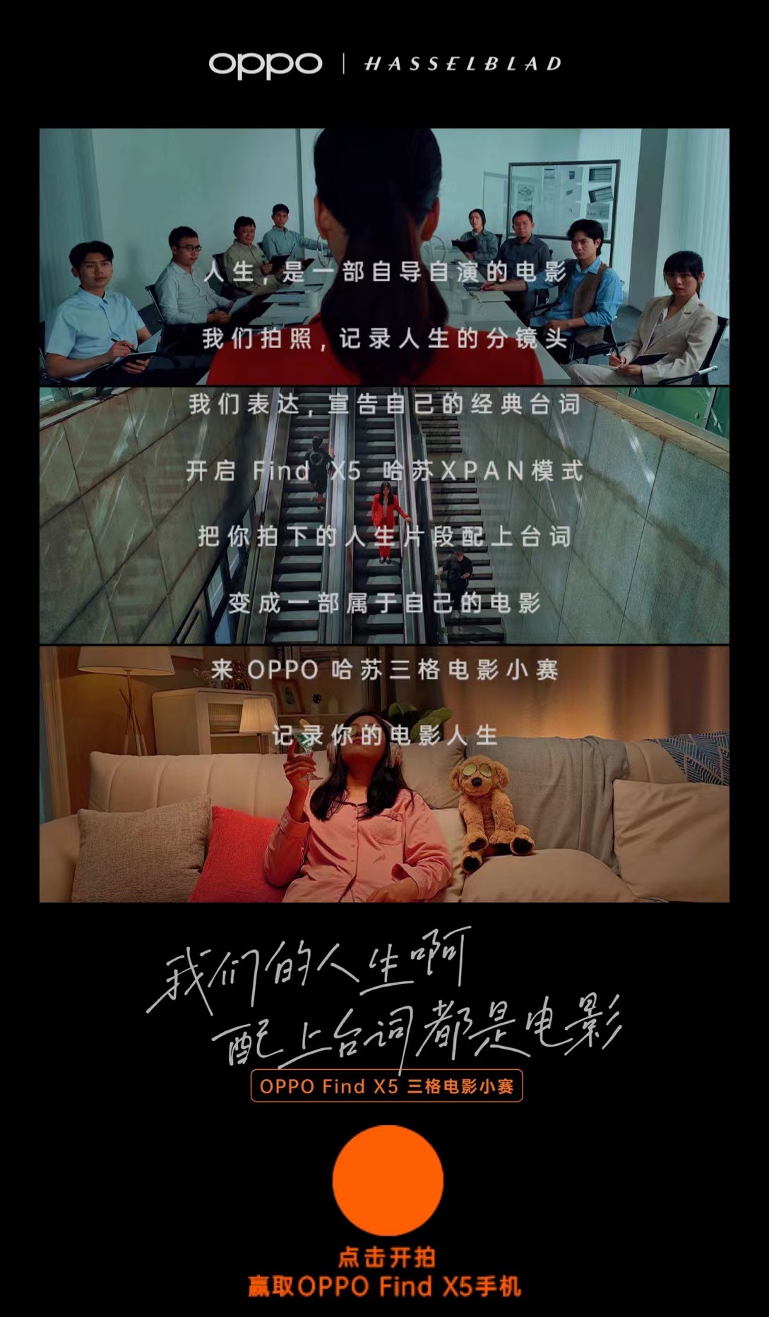 同时,OPPO 还发起了#OPPO 哈苏三格电影小赛#,设置最佳构图、最佳导演、最佳男女主角等奖项,鼓励大家创作自己的电影处女作~