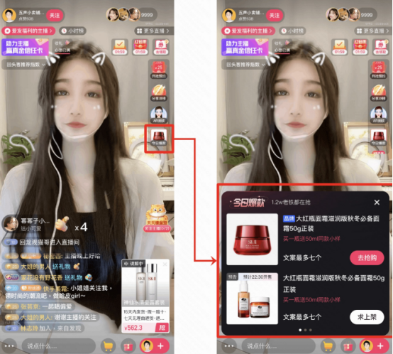 据了解,今日爆款功能作为原聚人气和爆款预告功能的升级版,是一个商家在直播间展示商品的营销工具。