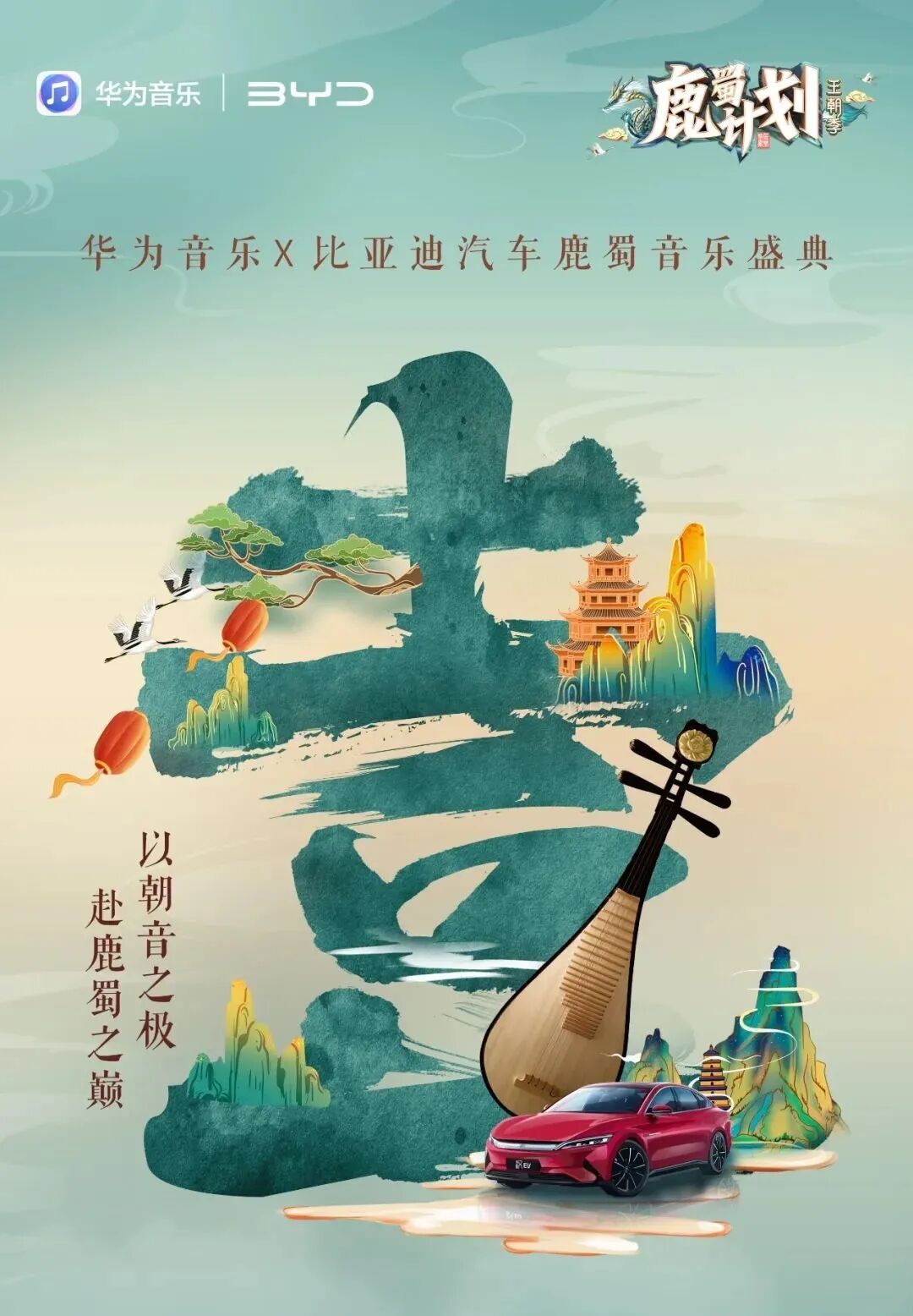 比亚迪联合华为音乐打造的鹿蜀音乐盛典就以国潮音乐元素为核心,以国风之名连接五湖四海,用传统乐器、戏曲元素、等不同的方式诠释国潮音乐,彰显千年华夏的国风文化。通过深度展现品牌基因与国潮文化的契合点,以《赤怜》、《盗墓笔记·十年人间》等国风歌曲穿越古今,直面“上下五千年,今朝开万象”的恢弘气势。