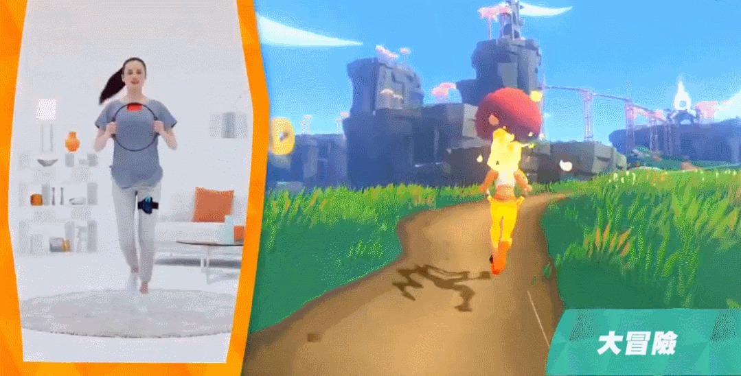 《健身环大冒险》是一款奇幻冒险游戏,游戏自带一条腿部绑带和一个柔性健身环,玩家通过肢体动作来控制人物,在体验冒险游戏的同时,又能达到运动效果。