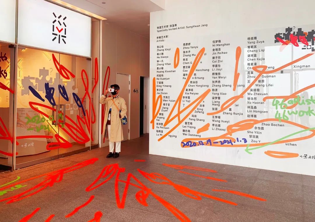 本展览正是使用了这一视觉语言作为46位年轻创作者群展的主视觉。随性恣意的电子屏语言与现实交错中,未来的创作有无限可能。