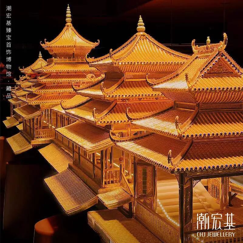回到潮宏基的这场发布会,其中最大的亮点,还是依托其极致的传统工艺呈现:非遗花丝工艺、镇馆之宝“花丝风雨桥”的复刻。